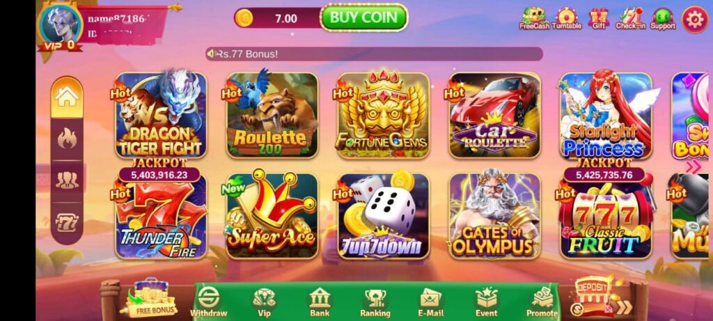 77VIP Game is new most famous gaming place where you can find lots of Card Games, Slots Game, Casino Game, Teen Patti Game. This Earning APP is free to download.